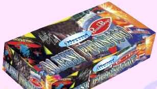 200 lanci di bengala con scia crackling che termina con colpi e aperture colorate.